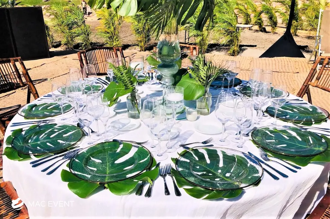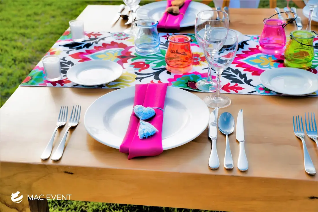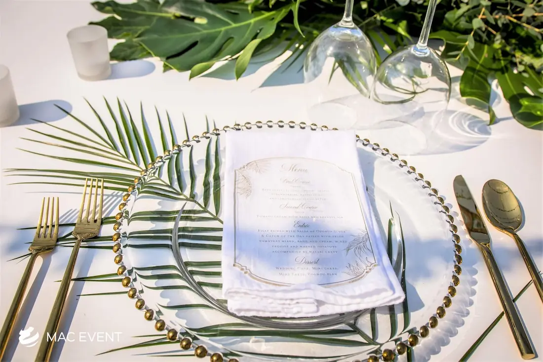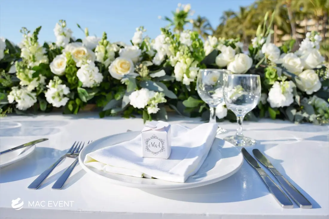 Our stylish table settings enhance the elegance of weddings and events in Riviera Nayarit. From elegant dinnerware to chic centerpieces, our settings create a cohesive and sophisticated look for your tables.