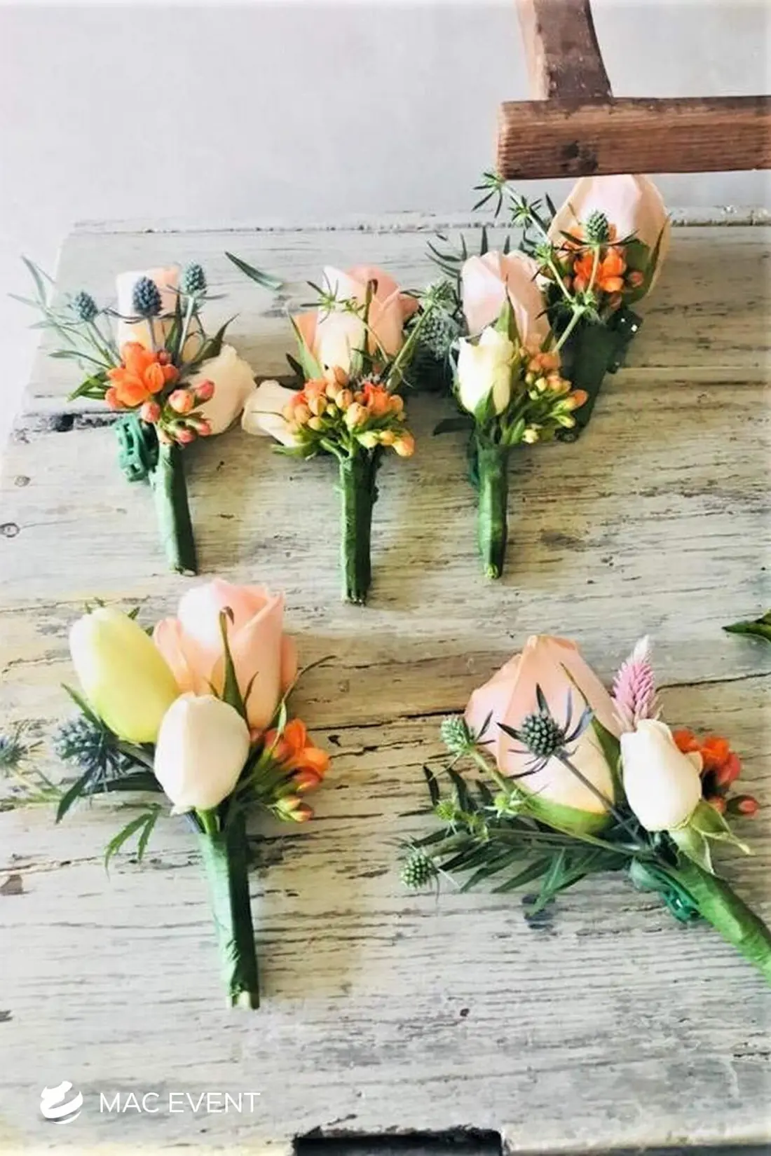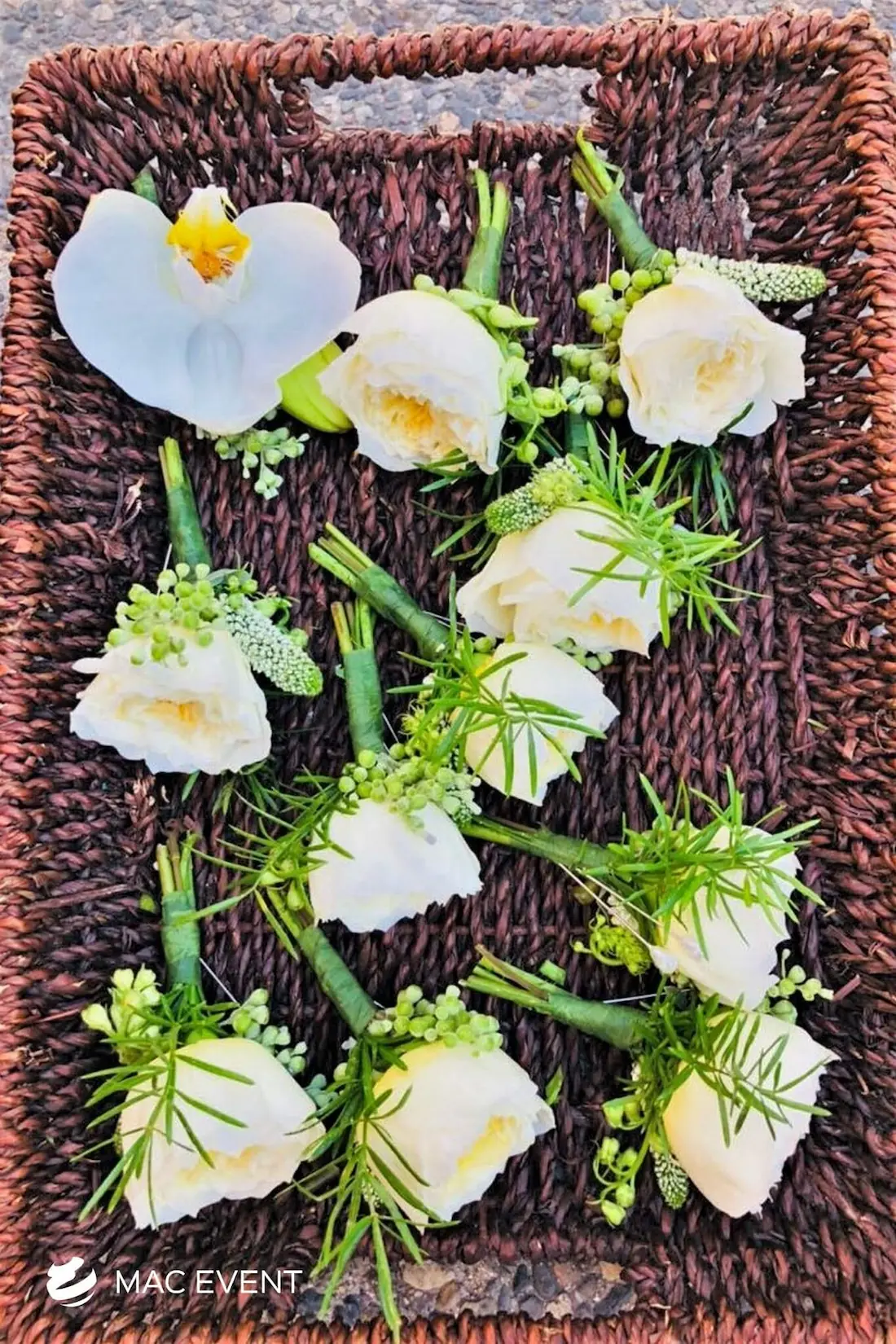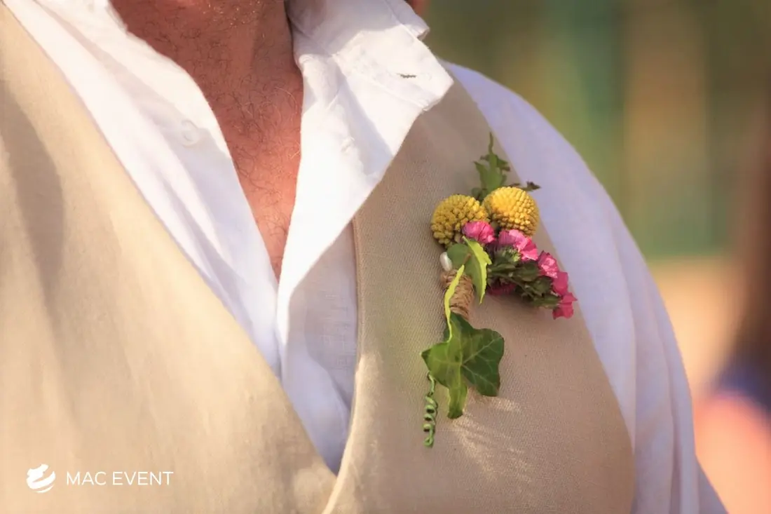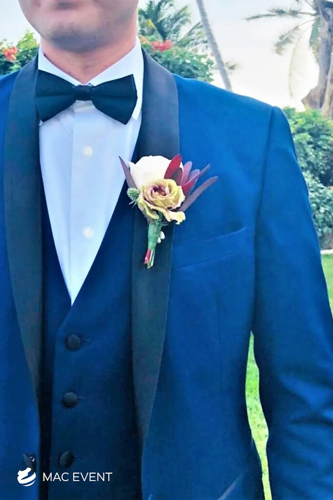 Add a touch of elegance with our boutonnieres, perfect for weddings in Riviera Nayarit. These stylish and beautifully crafted boutonnieres create a sophisticated and refined look for the groom and groomsmen.