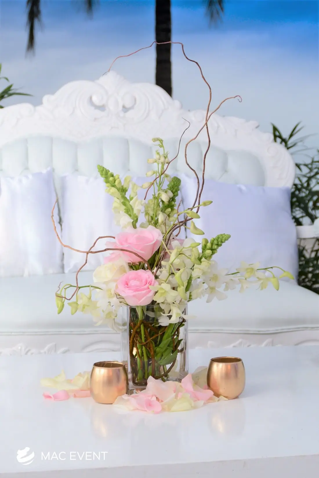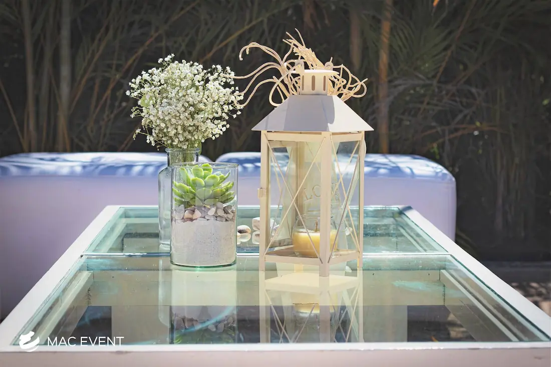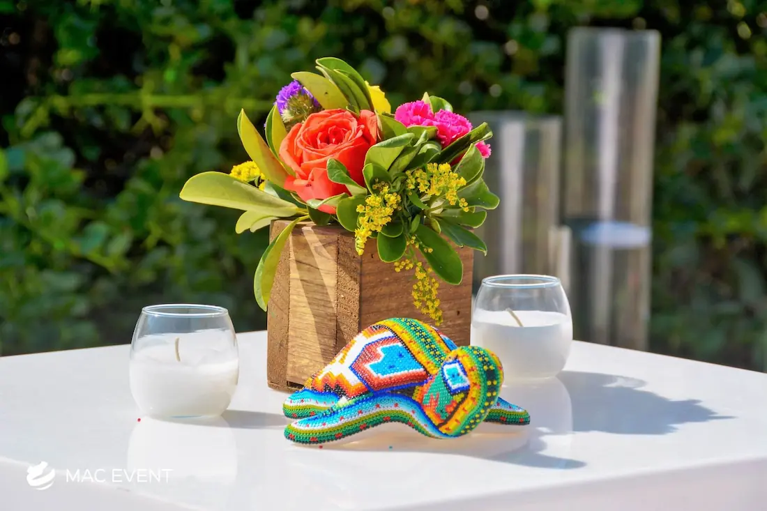 Enhance your lounge areas with our coffee table centerpieces, perfect for weddings and events in Riviera Nayarit. These stylish centerpieces add a touch of elegance and sophistication to your coffee tables.