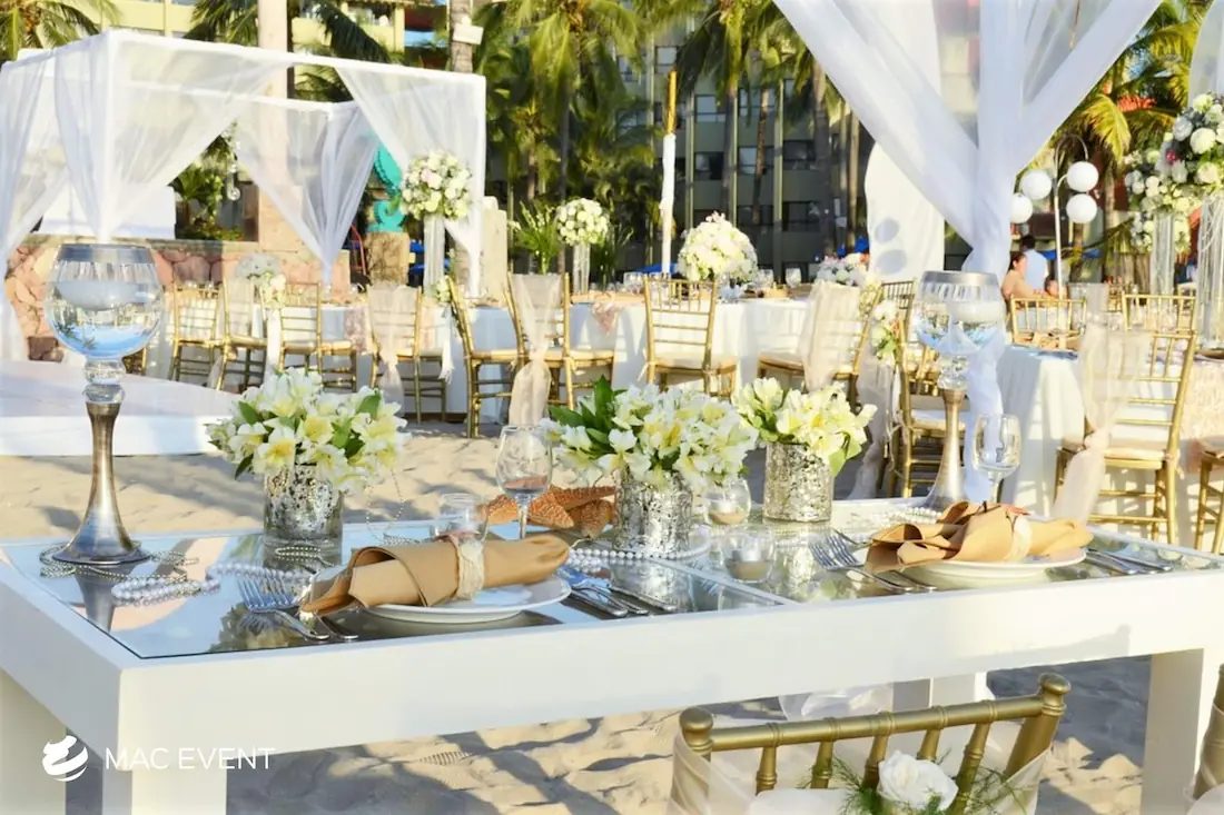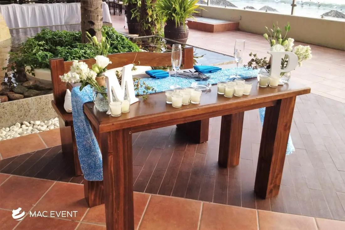 Create a beautiful and intimate setting with our sweetheart tables, perfect for weddings in Riviera Nayarit. These elegantly decorated tables provide a stunning focal point for the bride and groom.