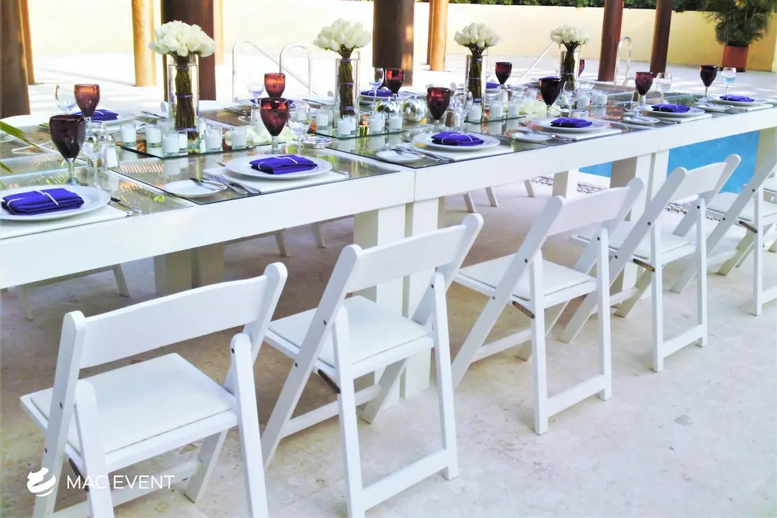 Make a statement with our Avant Garde chairs, designed for modern and stylish weddings and events in Riviera Nayarit. These unique chairs add a contemporary flair and are perfect for creating a chic, sophisticated atmosphere.