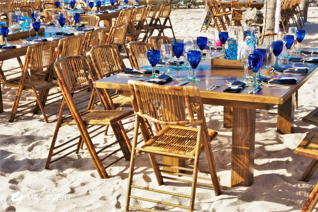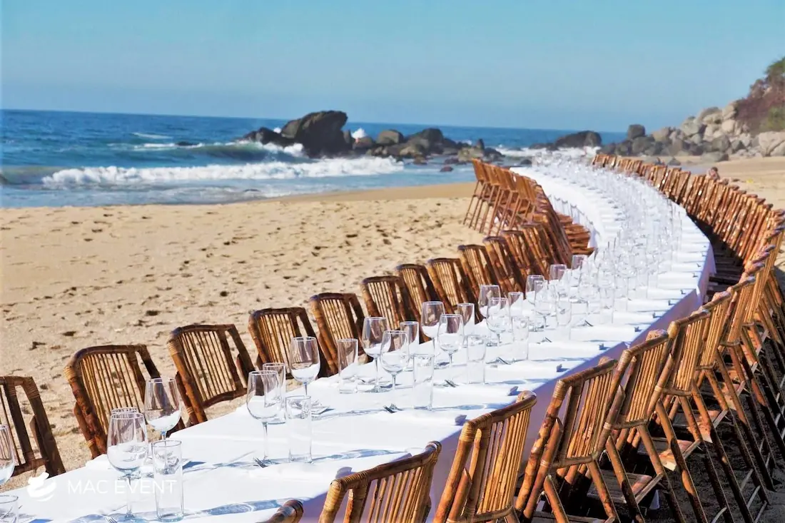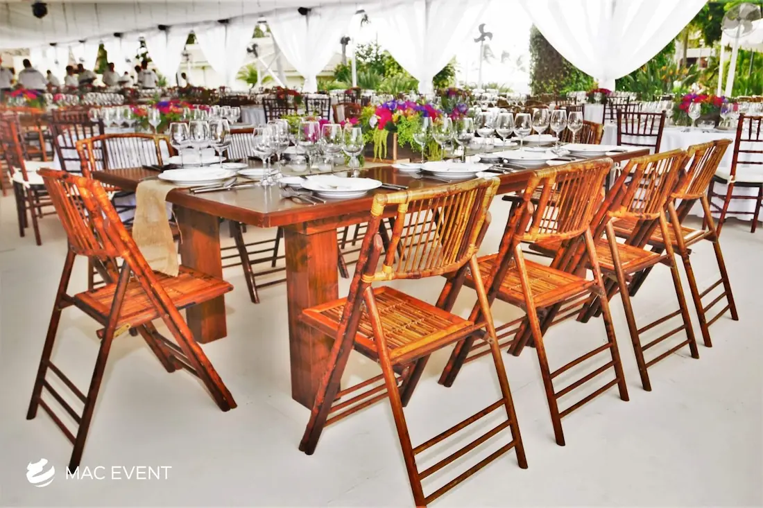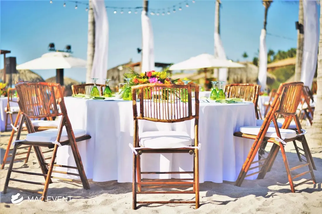 Bring a natural, eco-friendly touch to your event with our bamboo chairs in Riviera Nayarit. Ideal for outdoor weddings and events, these chairs offer a rustic yet refined seating option that blends seamlessly with nature.