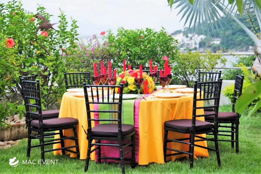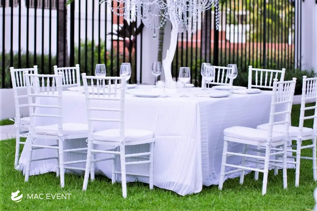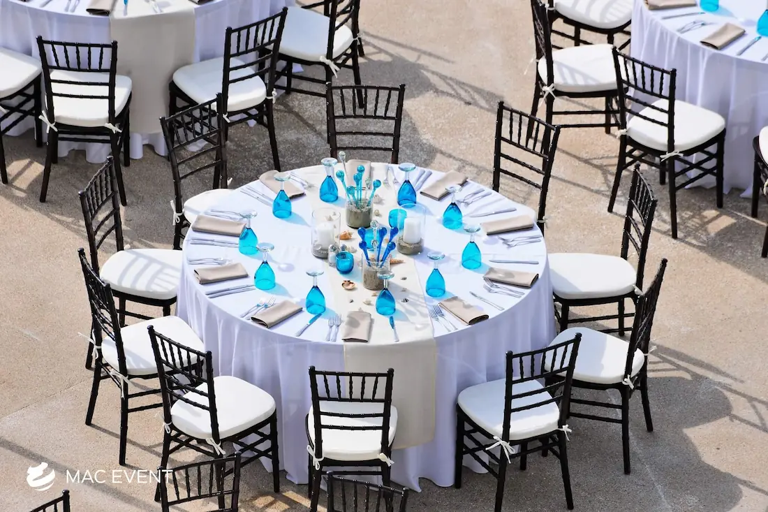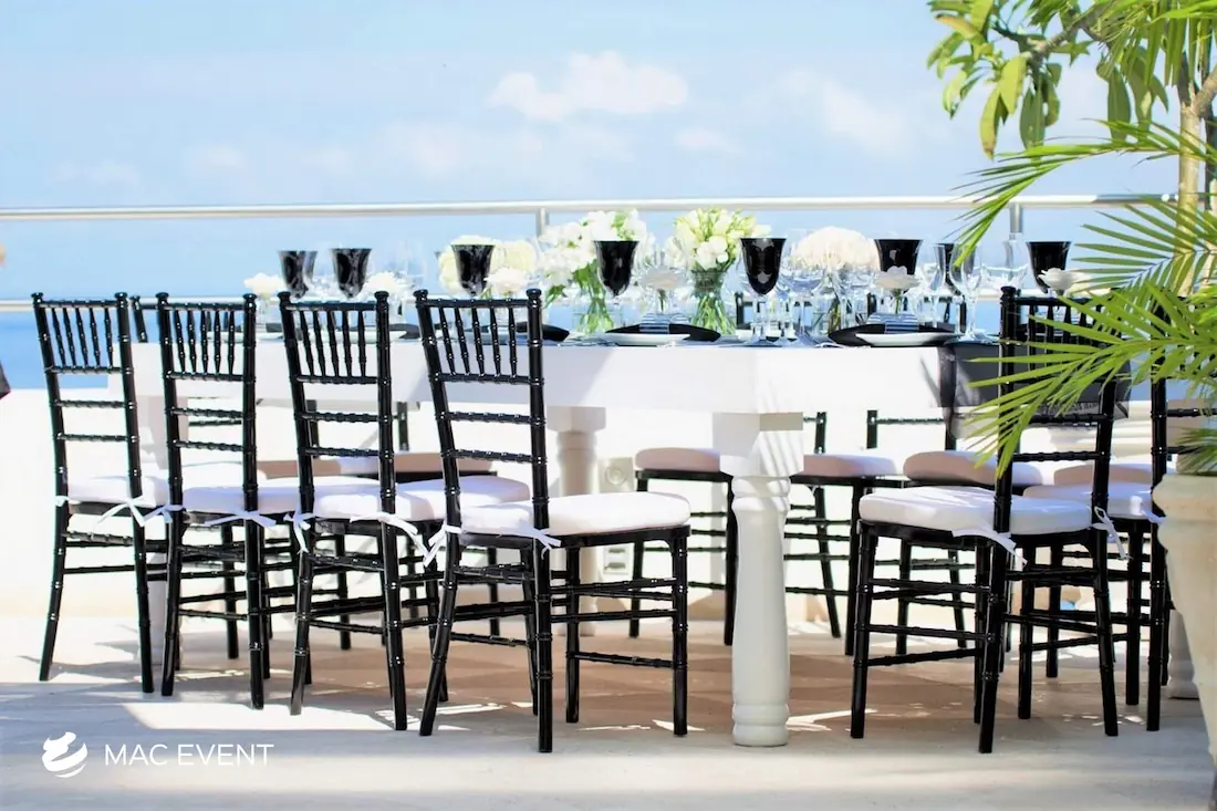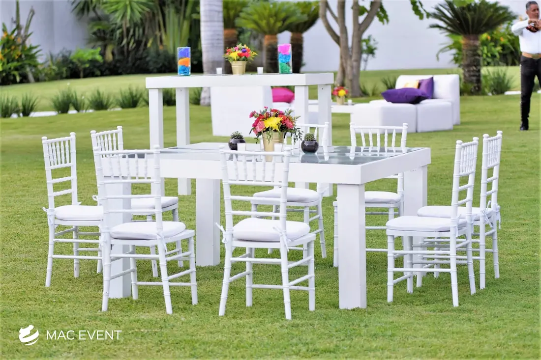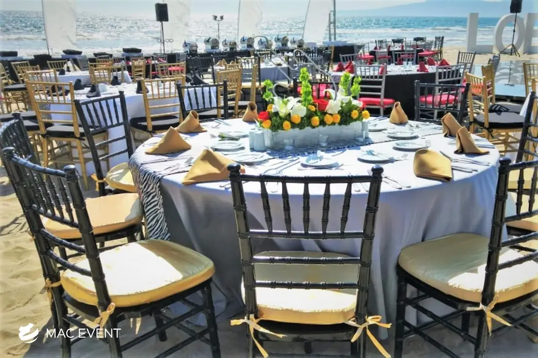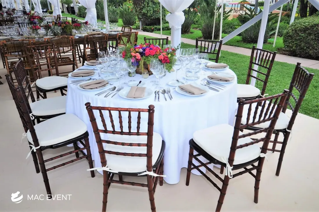 Our wood Chivari chairs bring a classic charm to any wedding or event in Riviera Nayarit. Sturdy and beautifully crafted, they are available in various finishes to match your decor and provide a timeless seating option.