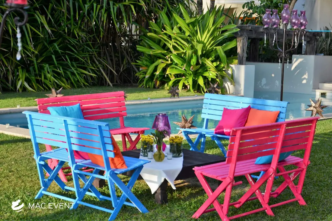 Celebrate local culture with our Mexican lounges, perfect for weddings and events in Riviera Nayarit. These colorful and beautifully crafted lounges add an authentic and festive touch to your seating arrangements.