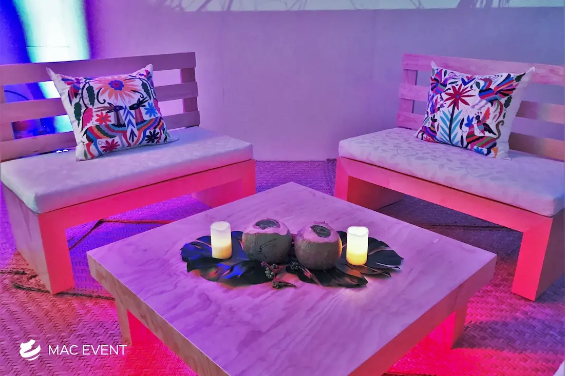 Our natural lounges are perfect for eco-friendly and rustic-themed weddings and events in Riviera Nayarit. Made from high-quality materials, these lounges offer a natural and organic look that blends seamlessly with nature.