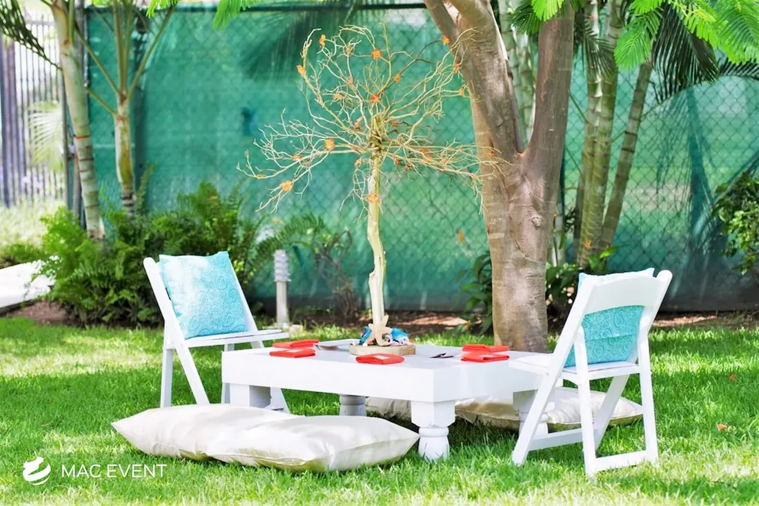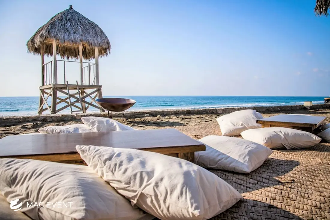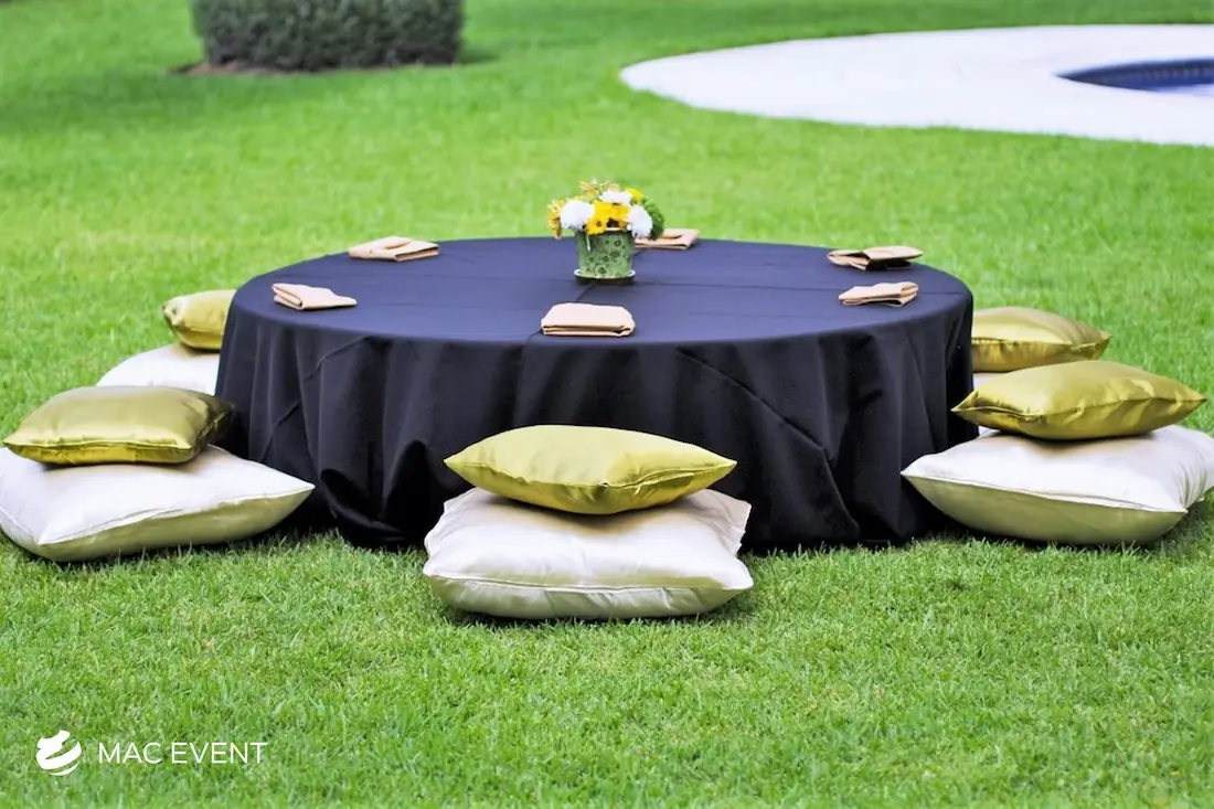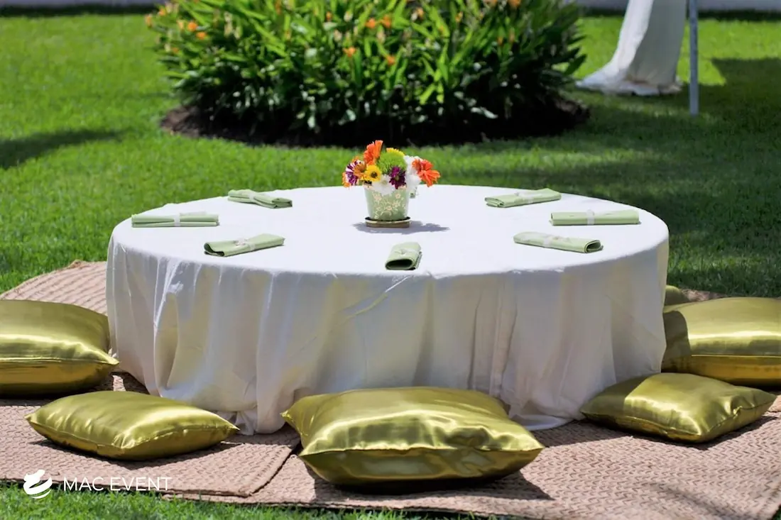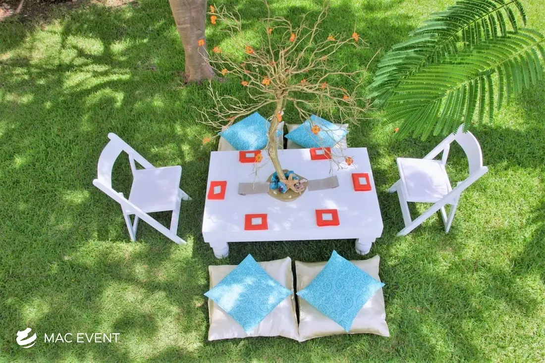 Create a relaxed and casual seating area with our picnic lounges, perfect for weddings and events in Riviera Nayarit. These lounges provide a charming and comfortable seating option, ideal for outdoor events.