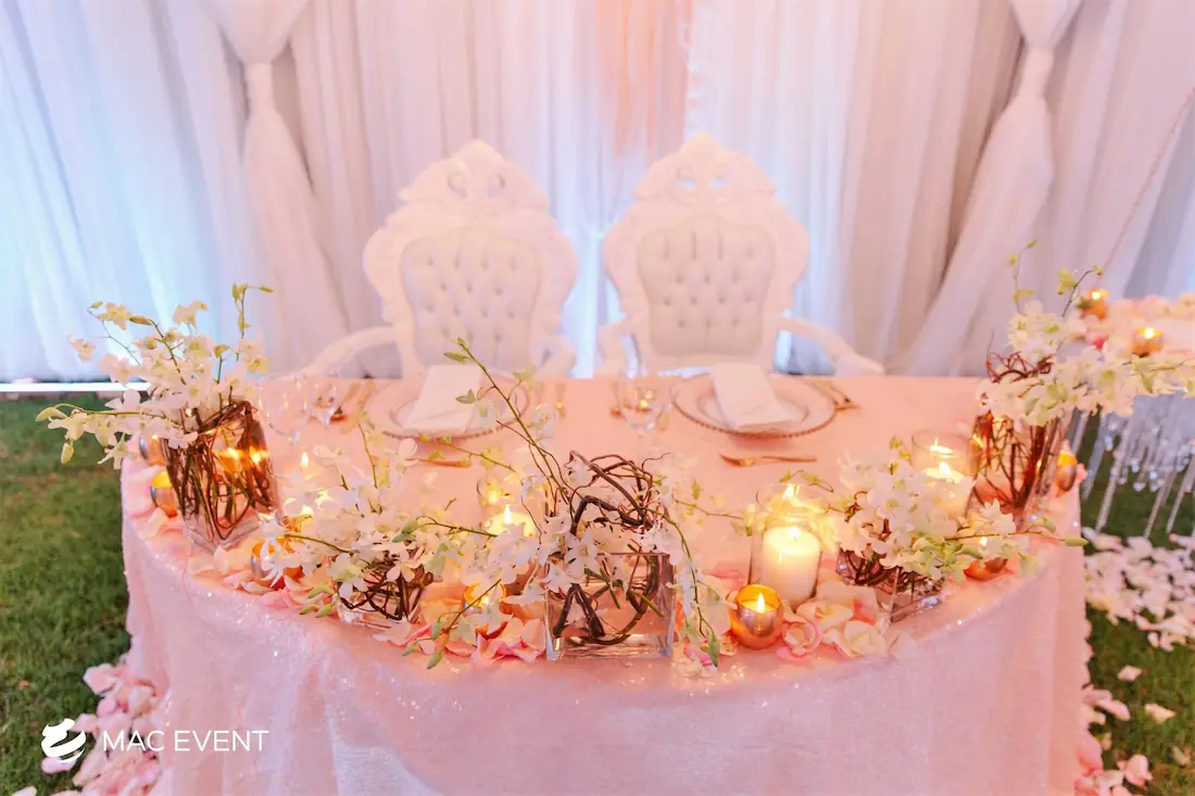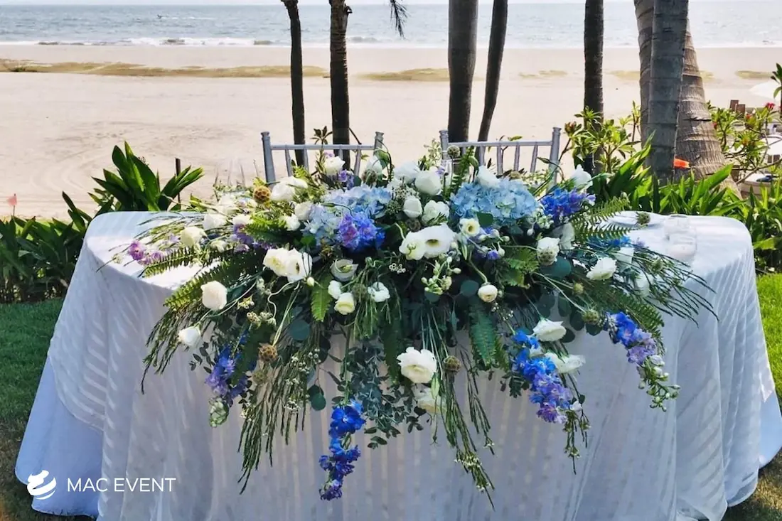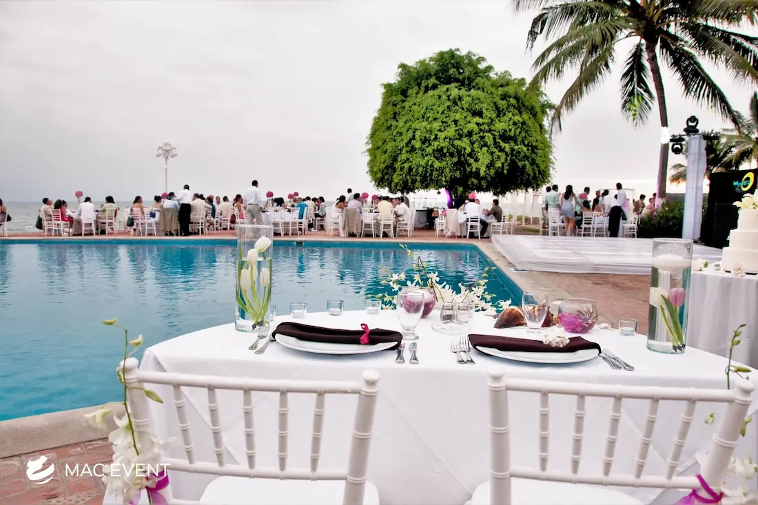 Our half-moon tables provide a unique and elegant solution for weddings and events in Riviera Nayarit. Perfect for creating stylish buffet setups or intimate seating arrangements, these tables enhance your decor and functionality.