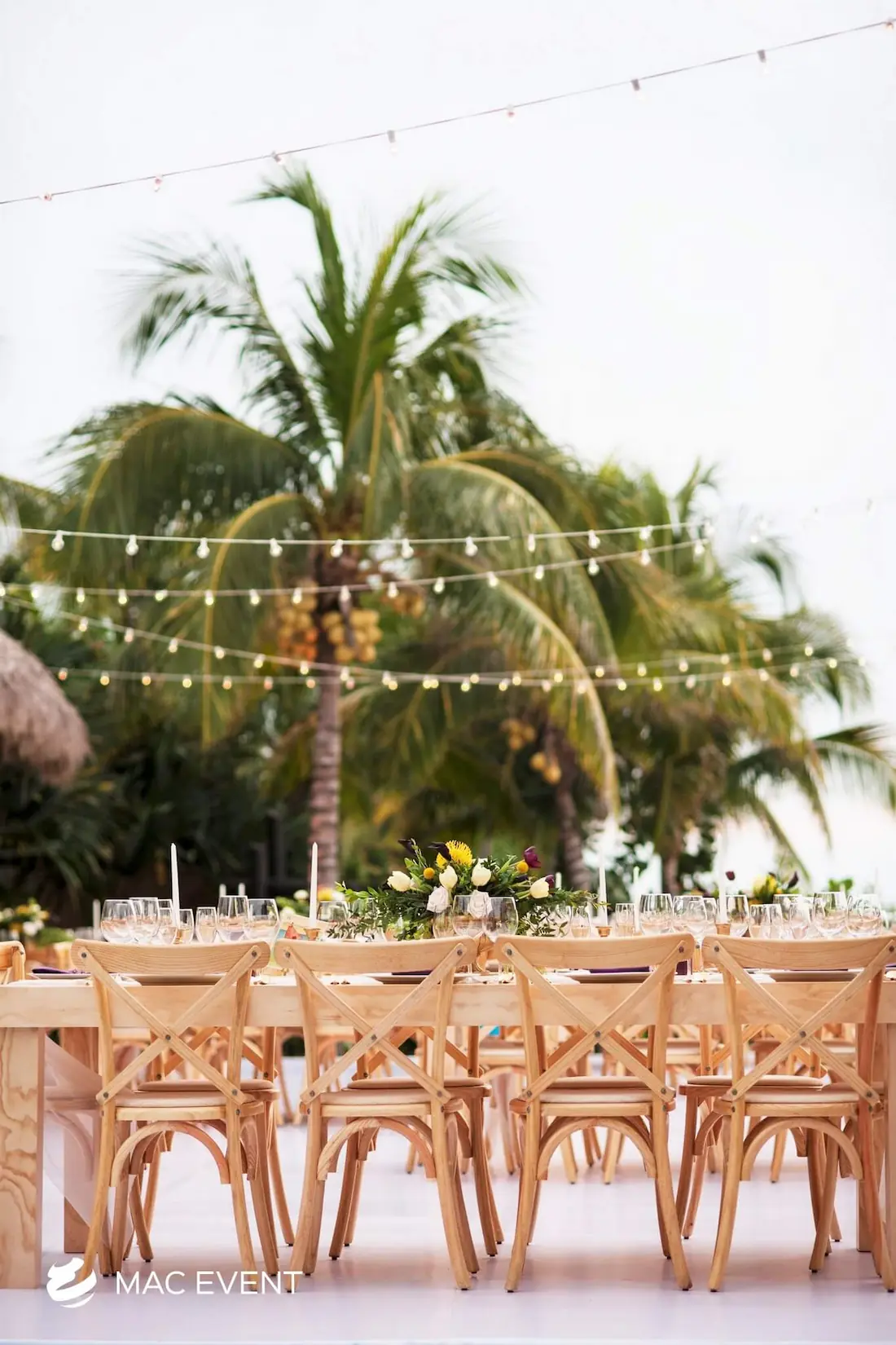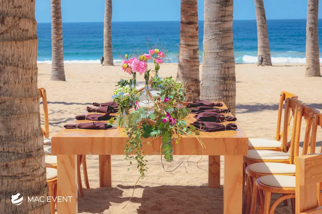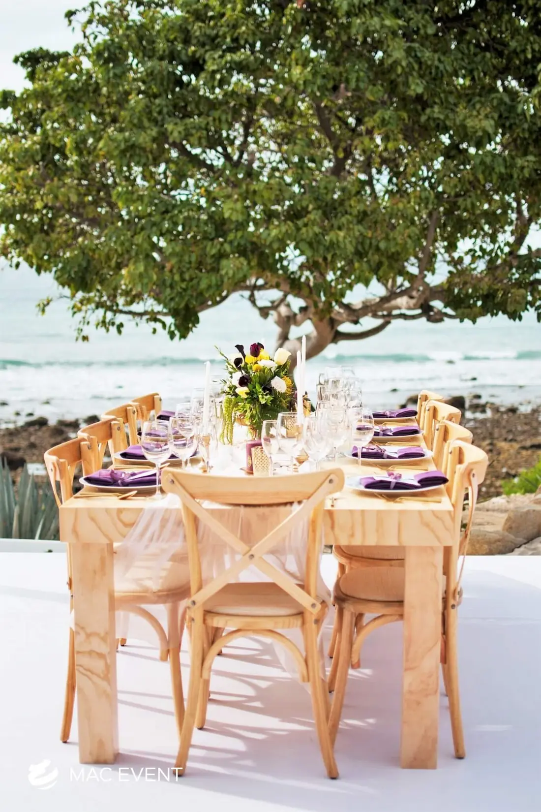 Our natural tables are perfect for eco-friendly and rustic-themed weddings and events in Riviera Nayarit. Made from high-quality materials, these tables offer a natural and organic look that blends seamlessly with nature.