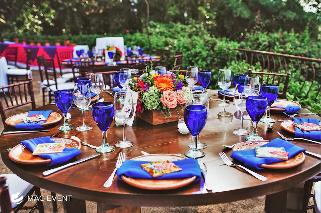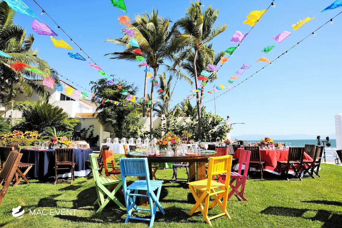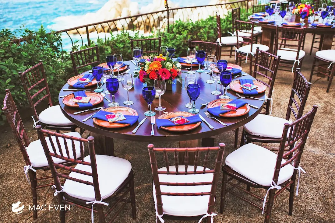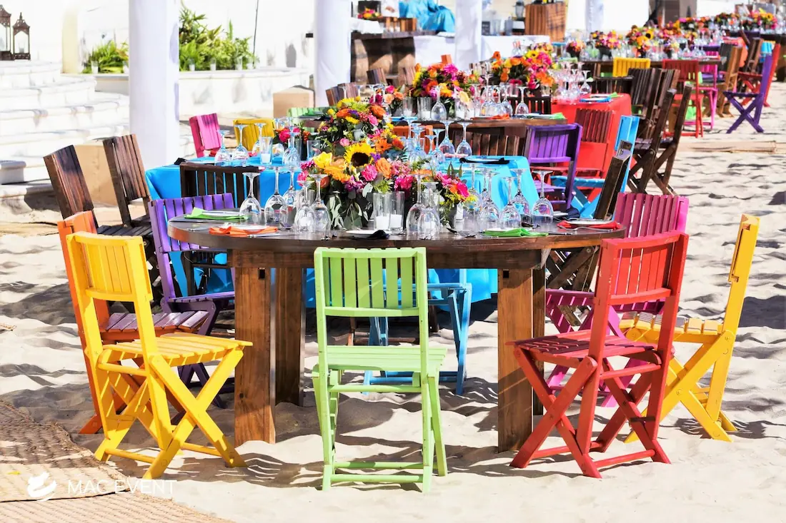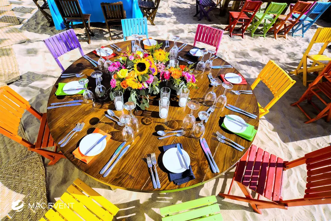 Enhance your rustic-themed event with our round rustic tables, perfect for weddings and events in Riviera Nayarit. These tables offer a charming and natural look, ideal for creating a warm and inviting atmosphere.
