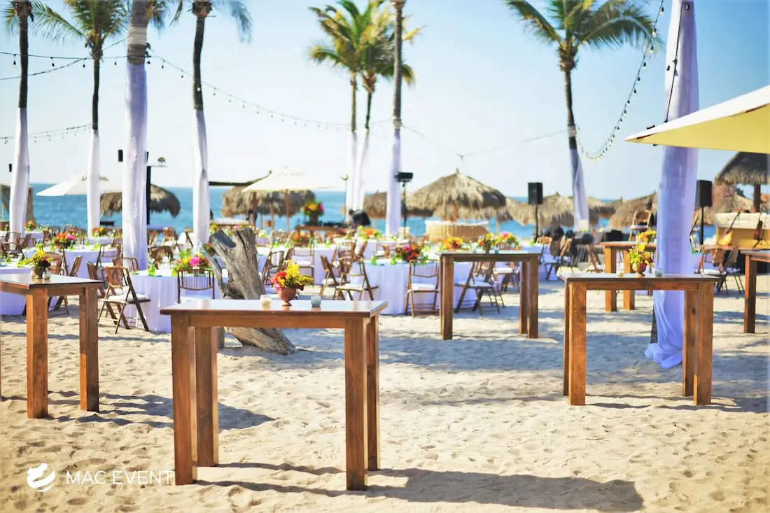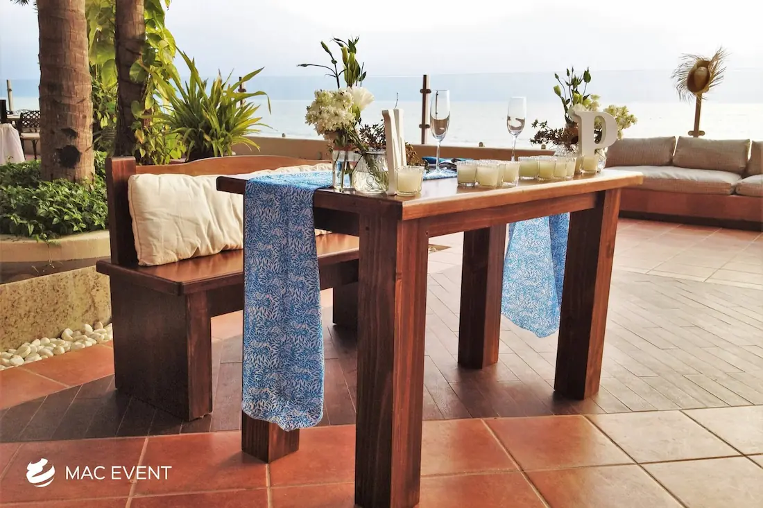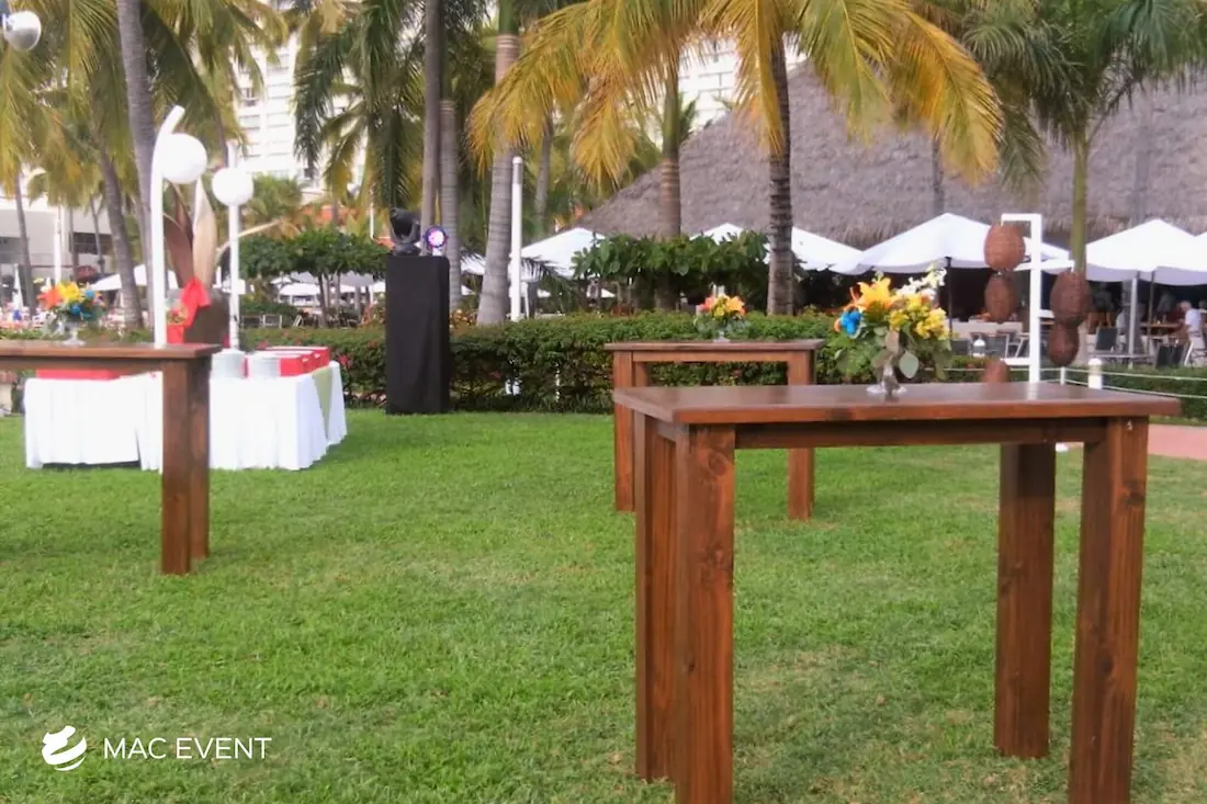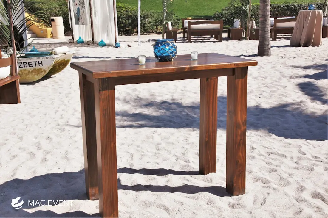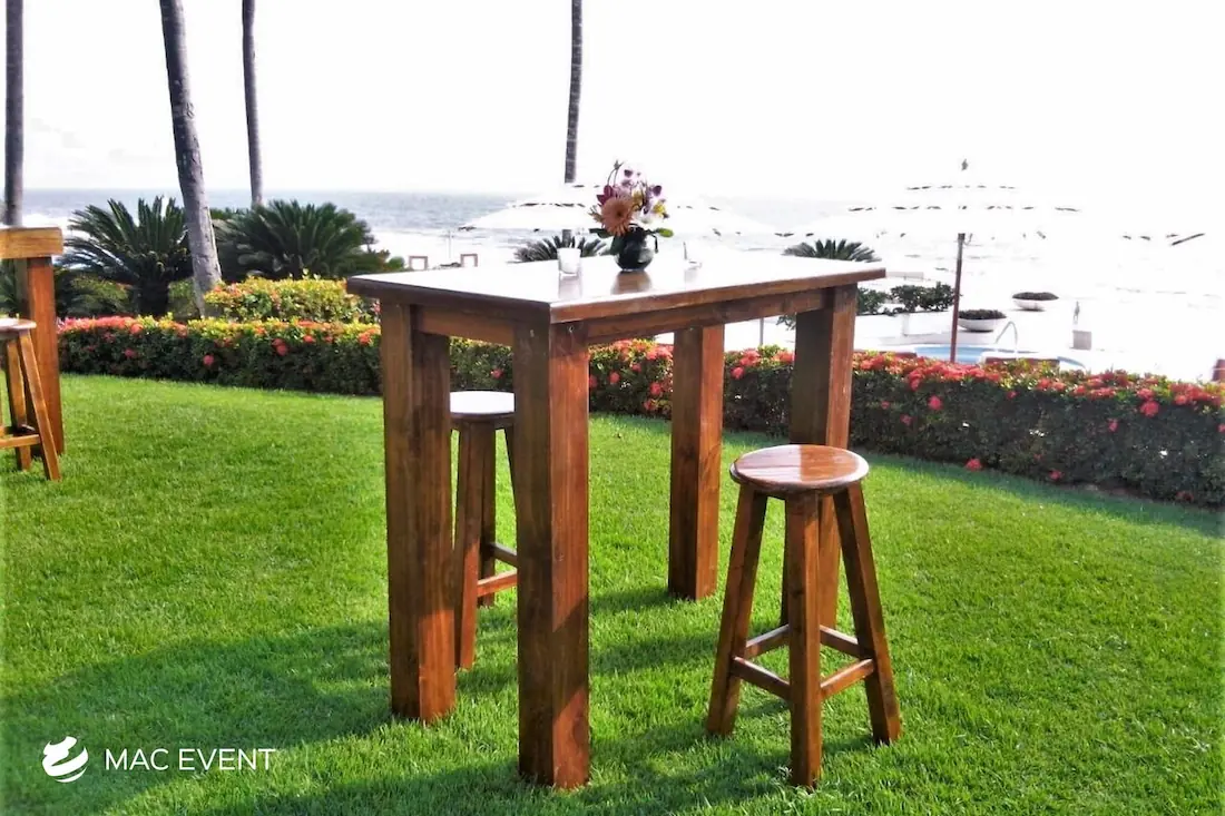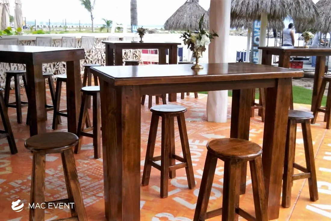 Enhance your rustic-themed event with our rustic cocktail tables, ideal for weddings and events in Riviera Nayarit. These tables provide a charming and functional addition to your bar areas, perfect for relaxed and stylish seating.