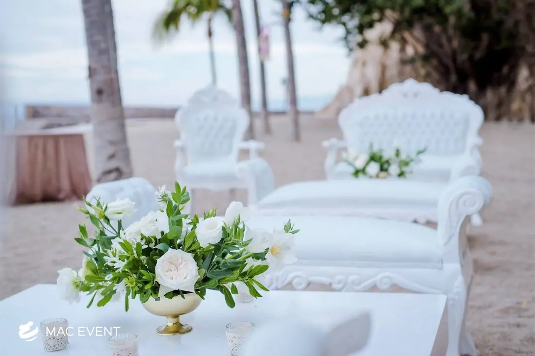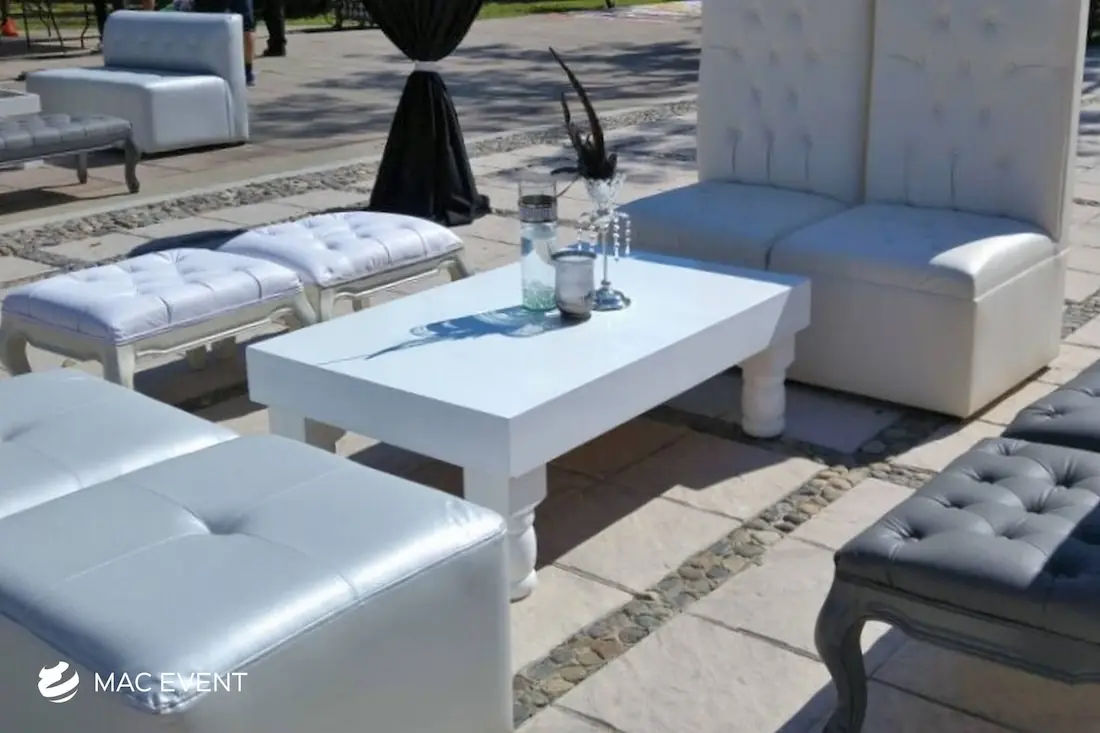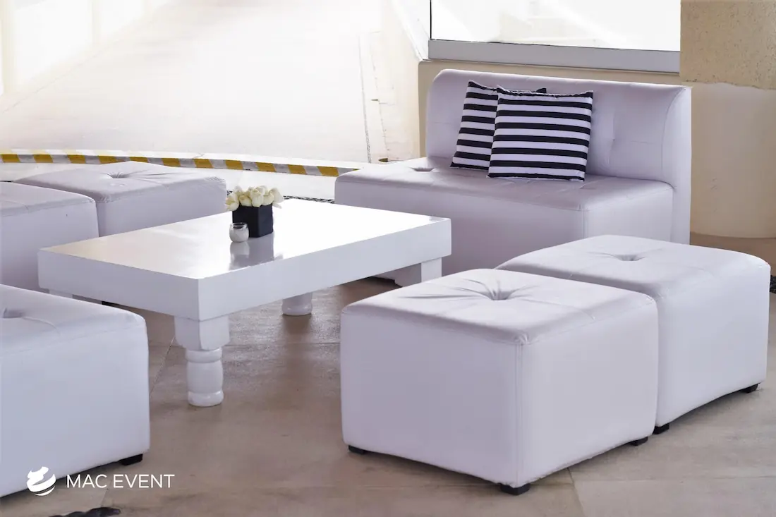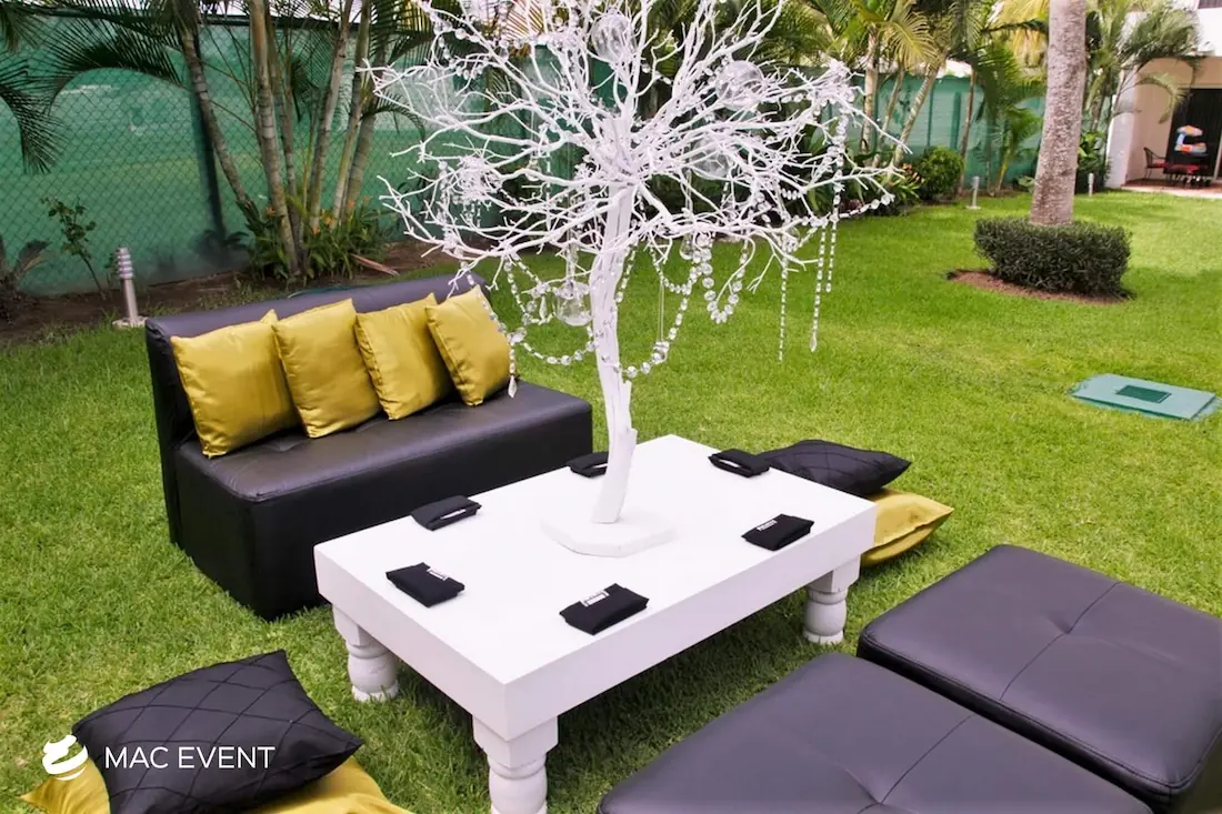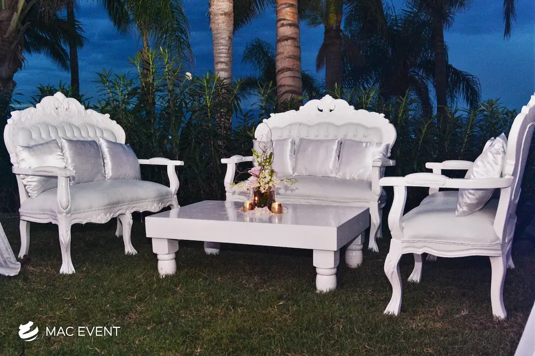 Our turned leg coffee tables add a touch of classic elegance to weddings and events in Riviera Nayarit. Featuring beautifully crafted legs, these tables provide a stylish and functional addition to your lounge areas.