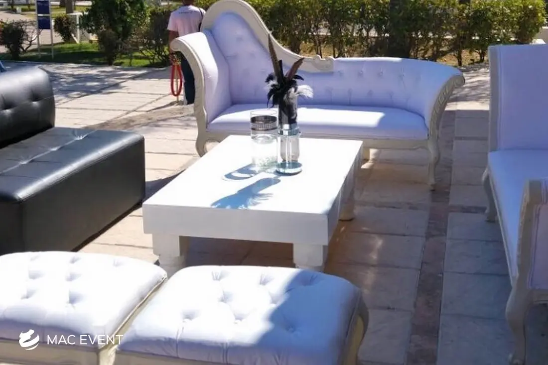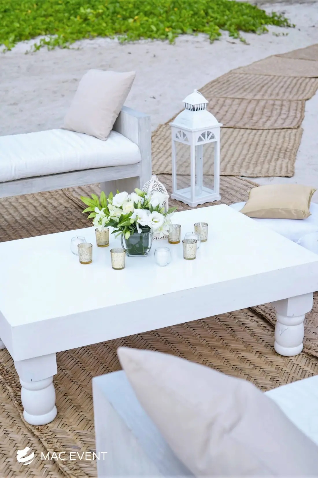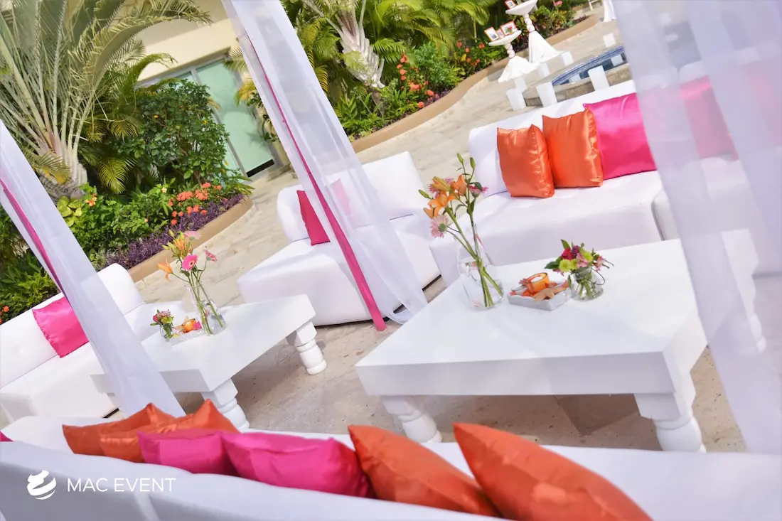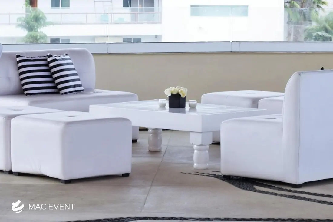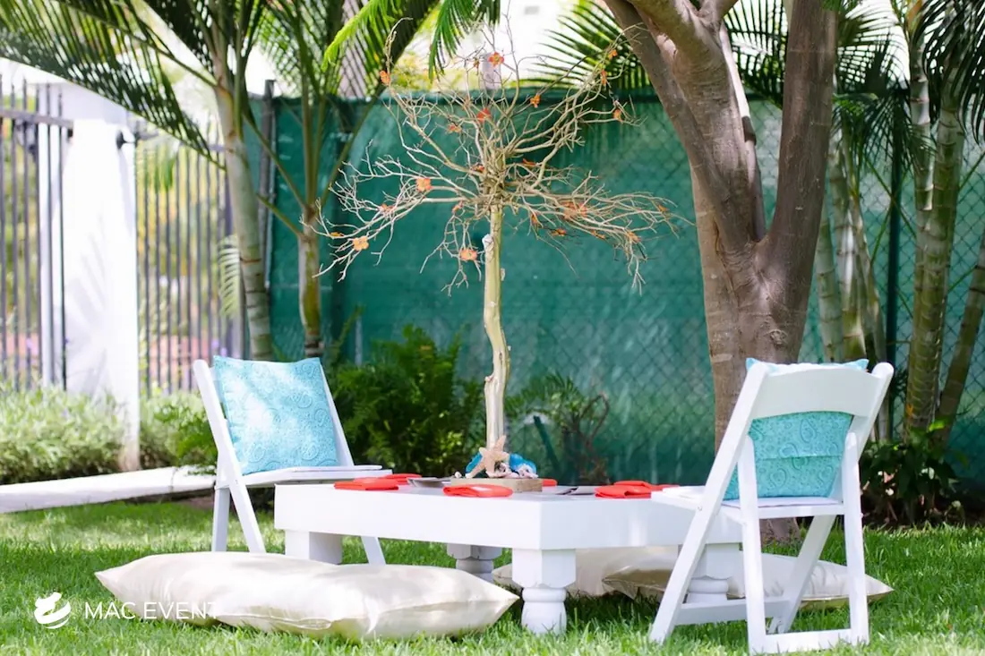Our turned leg coffee tables add a touch of classic elegance to weddings and events in Riviera Nayarit. Featuring beautifully crafted legs, these tables provide a stylish and functional addition to your lounge areas.