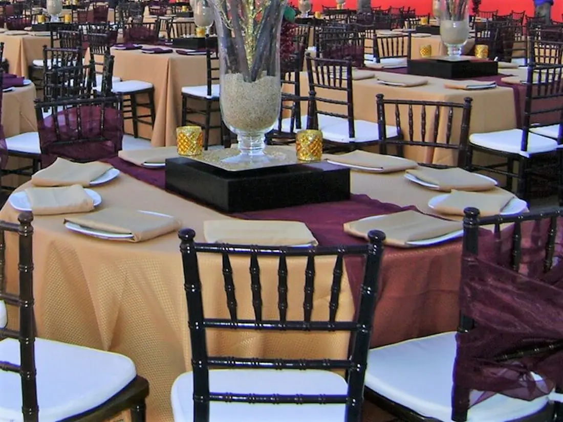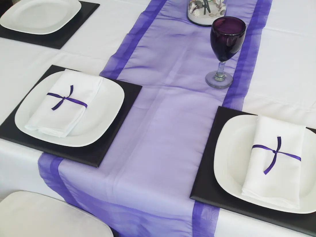 Add a touch of elegance with our organza table runners, ideal for weddings and events in Riviera Nayarit. These sheer and delicate runners enhance your table settings and create a sophisticated look.