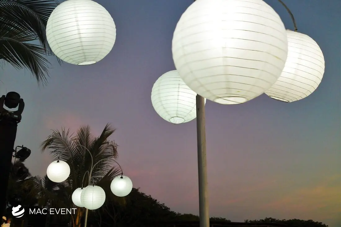 Add a touch of elegance with our paper lanterns, perfect for weddings and events in Riviera Nayarit. These beautiful lights create a warm and inviting ambiance, enhancing your decor and creating a memorable atmosphere.