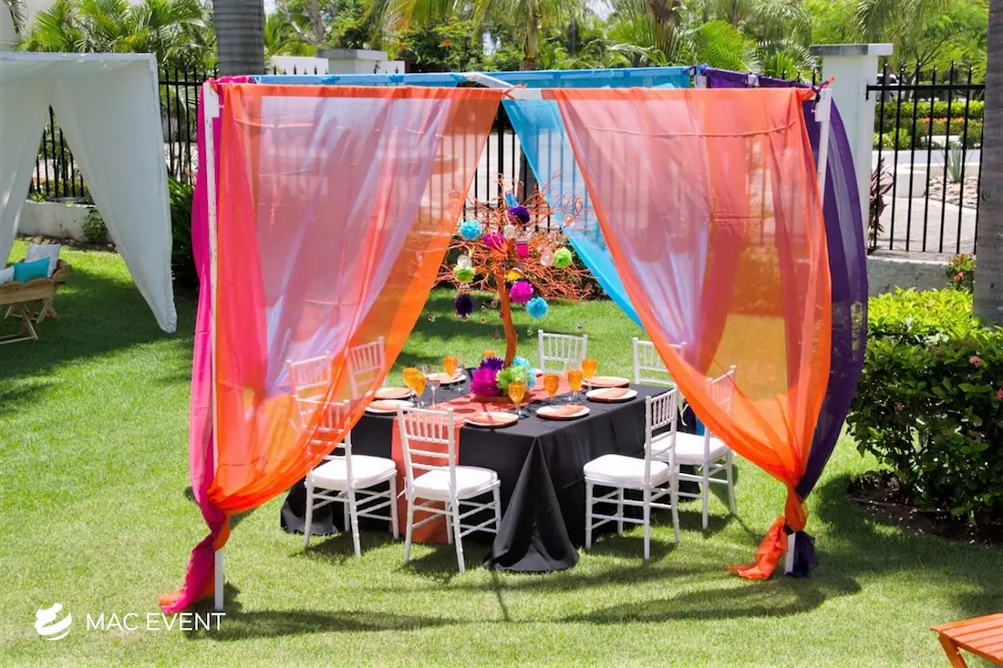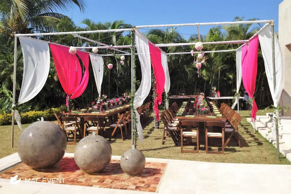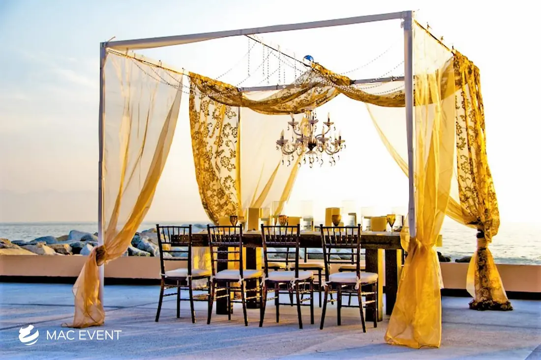Our stylish canopies provide a beautiful and functional solution for weddings and events in Riviera Nayarit. Perfect for creating shaded areas, these canopies enhance your decor and comfort.
